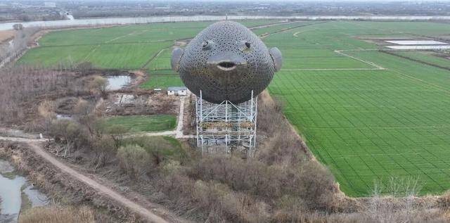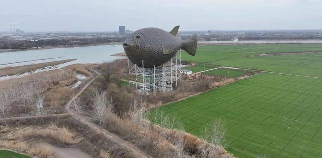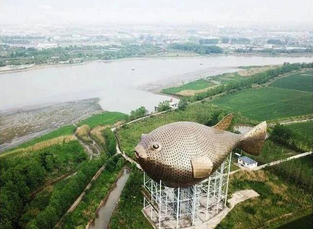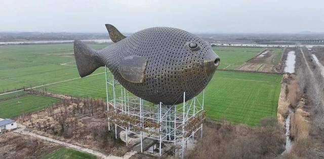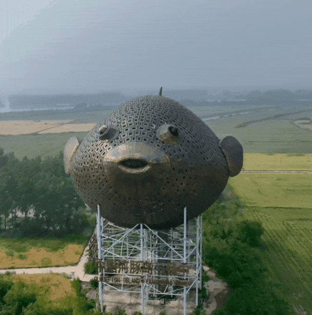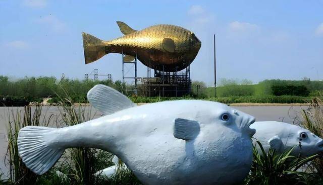 那是2013年动工、耗时近3年建成的巨型河豚雕塑,当地人喜欢叫它“河豚塔”。