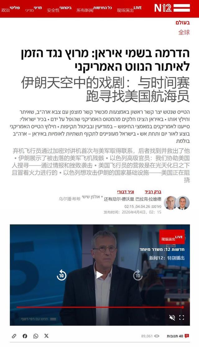 真正让美军的“英雄叙事”崩盘的,是他们的铁杆盟友以色列,以色列N12频道在报道中,无意间透露了飞行员“只走了12公里”这个致命细节。