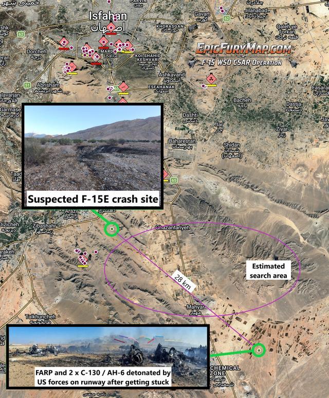 伊朗方面通过搜寻确定的大致区域,在科吉卢耶-博耶艾哈迈德省,而美军实际降落并建立基地的地方,却在伊斯法罕附近。