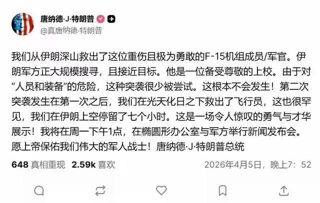 2026年4月初发生在伊朗的这场所谓“完美营救”,从一开始就被披上了好莱坞大片的外衣,特朗普高调宣布行动成功,称其展现了“美国绝不抛弃任何一名士兵”的精神。