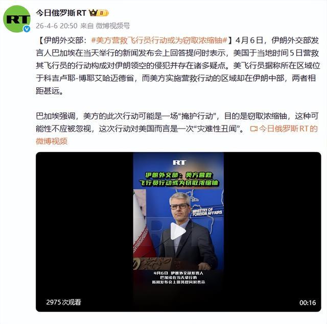 发言人巴加埃指出,营救地点和飞行员位置相隔数百公里,这根本说不通,他断言,这是一场“掩护行动”,真实目的是窃取伊斯法罕核设施里的浓缩铀。