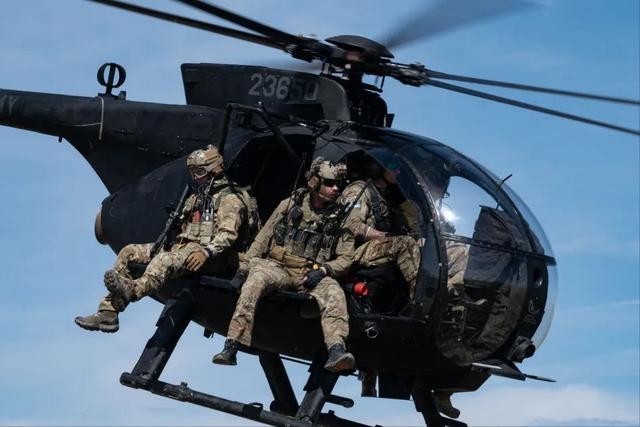 执行任务的是MH-6“小鸟”直升机,原因很简单,黑鹰块头太大,塞不进C-130的机舱,而小鸟体积小巧,一架C-130能轻松装下两架,解决了远程投送的核心难题。